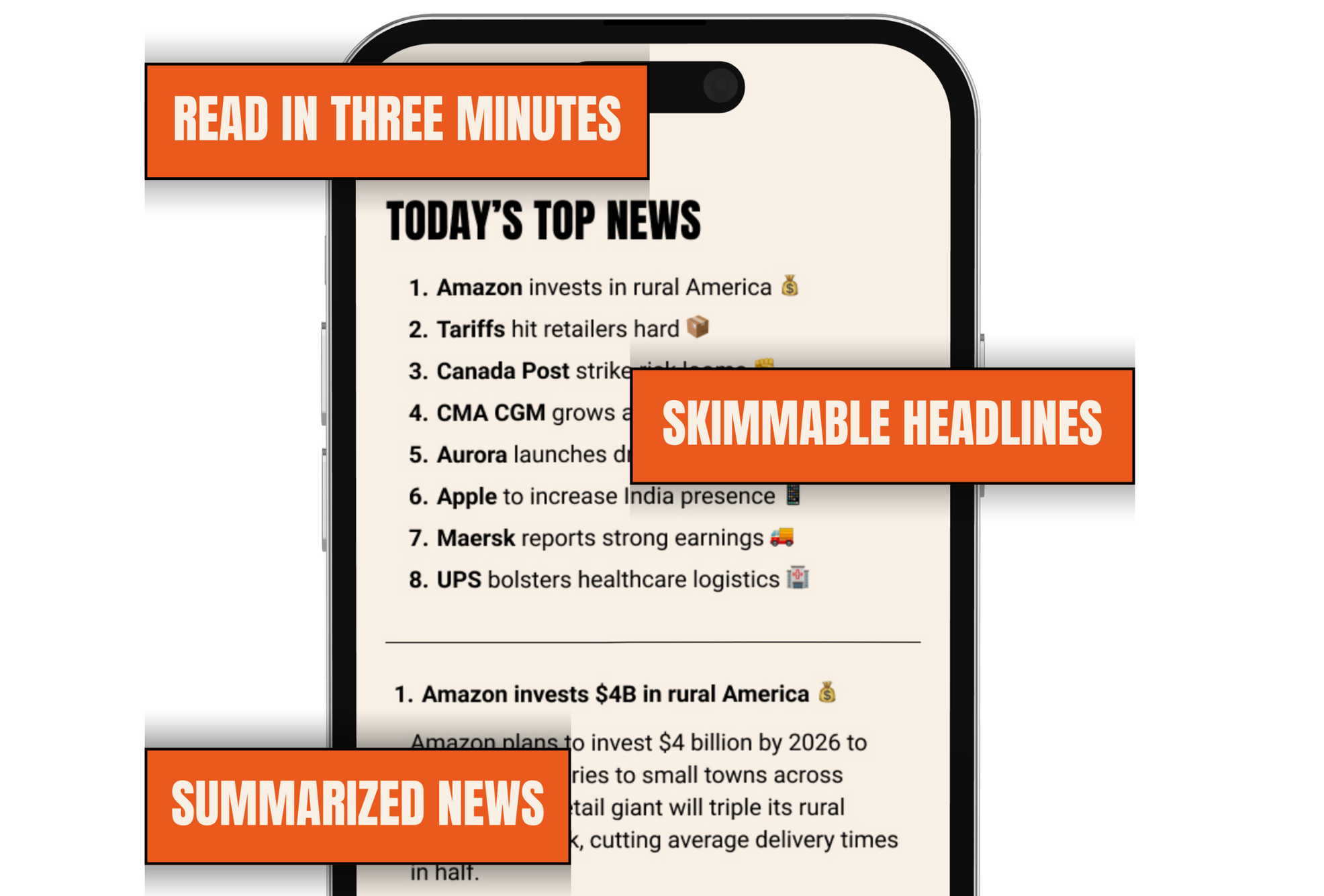 Save 20+ hours per month with the day's top logistics, trade, transport, & manufacturing news - delivered in a 3-min read.
